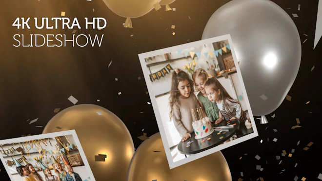 A dynamic After Effects template that you can use to display your favorite photos inside of a 3D environment. It features several animated camera pans of photos floating among balloons and confetti. Ideal for birthdays, New Year's day, and other parties. Download it today. No plugins are required.