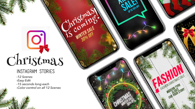 Christmas Instagram Stories is a stylish After Effects template with 12 uniquely designed and elegantly animated Instagram stories. They're so easy to use and each one comes with its own individual color controller. A fantastic way to display your traveling, vacations, birthdays, new products, portfolio, modeling, sports and fashion photos. Impress your audience with this trendy looking and fashionably animated AE template. No plugins required.