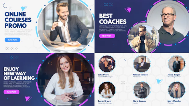 Online Courses Promo is a stylized After Effects template with an eye-catching design, simple text animations and smooth transitioning effects. It contains 28 editable text layers, 18 media placeholders and 1 logo placeholder. Simply style it to match your own brand, using the intelligent color controller. You can use it to show off a variety of photos and video clips. Impress your audience with this clean, clear and creatively animated AE template. No plugins required.