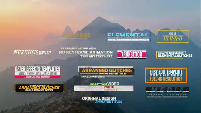 Random Titles is an awesome After Effects template with 19 uniquely designed and elegantly animated full-screen title animations. They're so easy to use, simply edit the text, drag and drop in your media and hit render. A wicked intro to your presentations, slideshows, films, movies, trailers, teasers, TV shows, commercials, promotions and events videos. Impress your audience with this quick and energetically animated AE template. No plugins required.