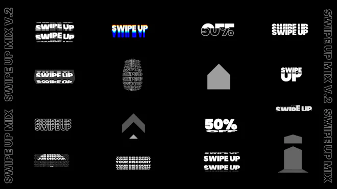 Swipe Up Mix V.2 is a dynamic After Effects template that contains a set of cool looking text animations (you can turn each text off) at your discretion, each text has its own color settings. You can use them on your Facebook, Tik Tok and Instagram videos. Impress your audience with this quick and creatively animated AE template. No plugins required. Help video included.