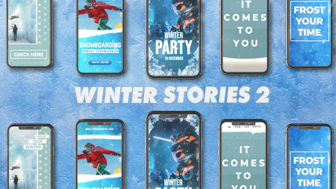 Winter/Frost Social Media Stories is a super cool looking and creatively animated After Effects template. It contains 5 vertical designs. You can use it to promote your winter holidays and winter events. Impress your audience with this skillfully designed and sensationally animated AE template. No plugins are required.