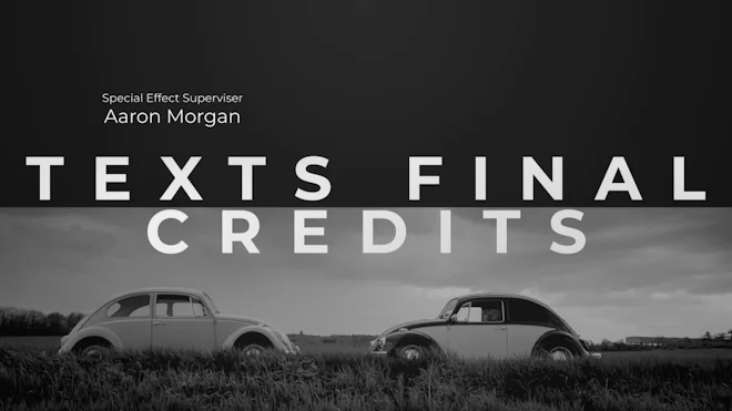 The project of the final credits to the film. The perfect solution for the end of your film, trailer, movie, television show or commercial. The project includes 12 frames that you can use to finish a film or project. Just replace the titles and photos and get professional captions for your movie. Easy to Use. No Plugins needed. Pay attention my other projects: Animation Elements 2 | Geometric Cinematic Slideshow | Shadow Roboto Transitions