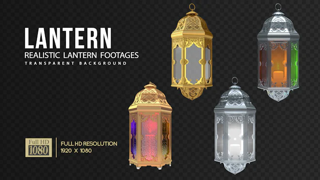 This stock motion graphics pack features 4 sets of different style Arabic lanterns rotating in the screen. The lamps featured come in gold and silver, with plain or colored lights glowing from inside. These elements come with alpha channel so you can place this over many layers of background. Add this to projects related to Arabic cultural themes, as well as other culture themes that require an old world light source. Use this on movie and TV sequences, festival video greetings and announcements, presentations, and other creative concept videos. This clip is available in HD resolution.